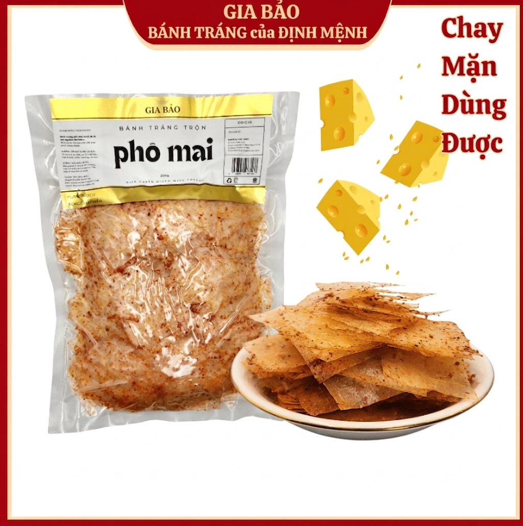 🧀 Bánh tráng trộn phô mai Gia Bảo 250g – Béo thơm đậm vị siêu cuốn
